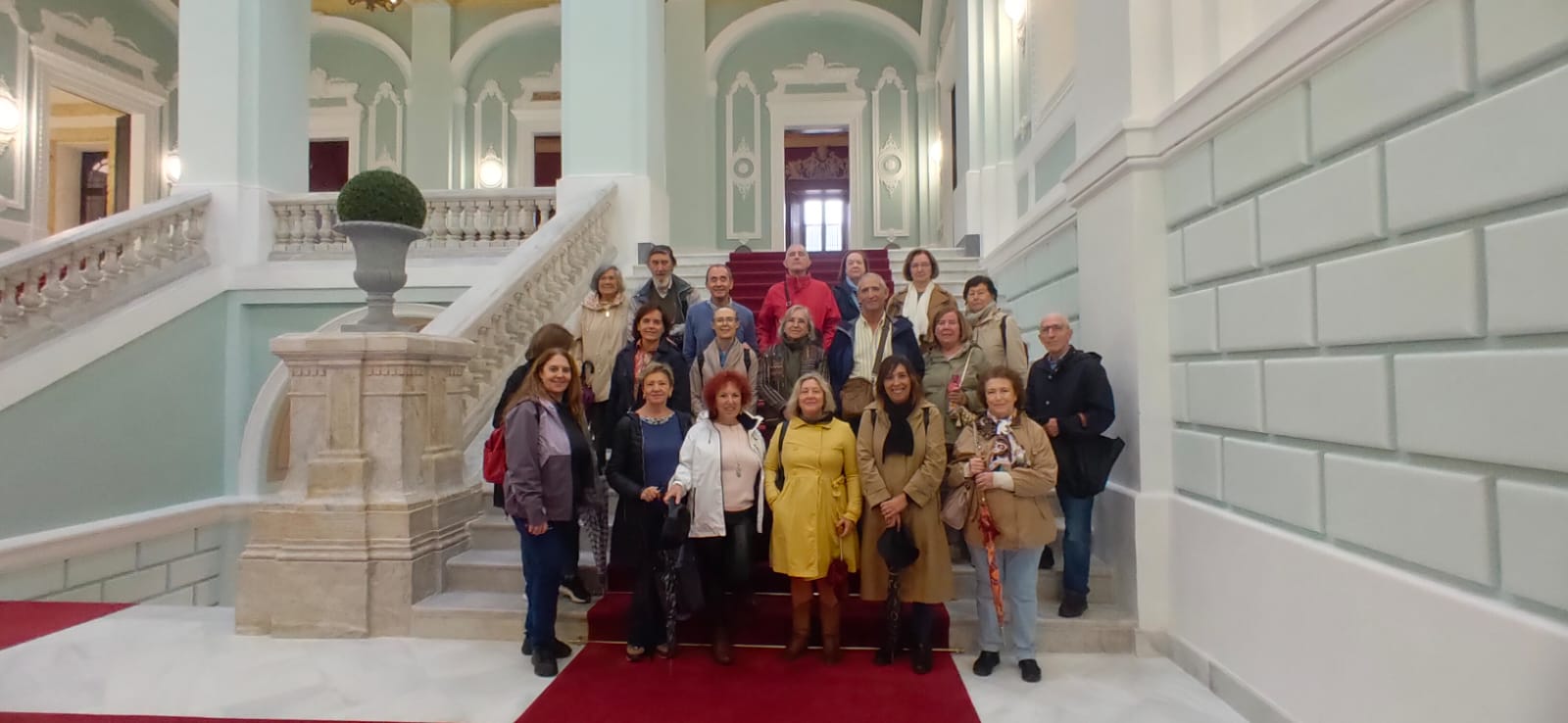 Una vez allí y a pesar de la lluvia, nos recreamos en la majestuosa fachada y tuvimos tiempo de encontrar a la famosa salamanquesa isleña. Una vez en el interior, nos recibió Belén, nuestra guía, que nos informó minuciosamente de la historia del edificio y de las últimas reformas realizadas. Nos sorprendió gratamente el patio de la cárcel, la escalera imperial y el moderno salón de plenos. Desde aquí agradecemos a Belén las gratas e instructivas explicaciones que nos hicieron disfrutar de este emblemático edificio.